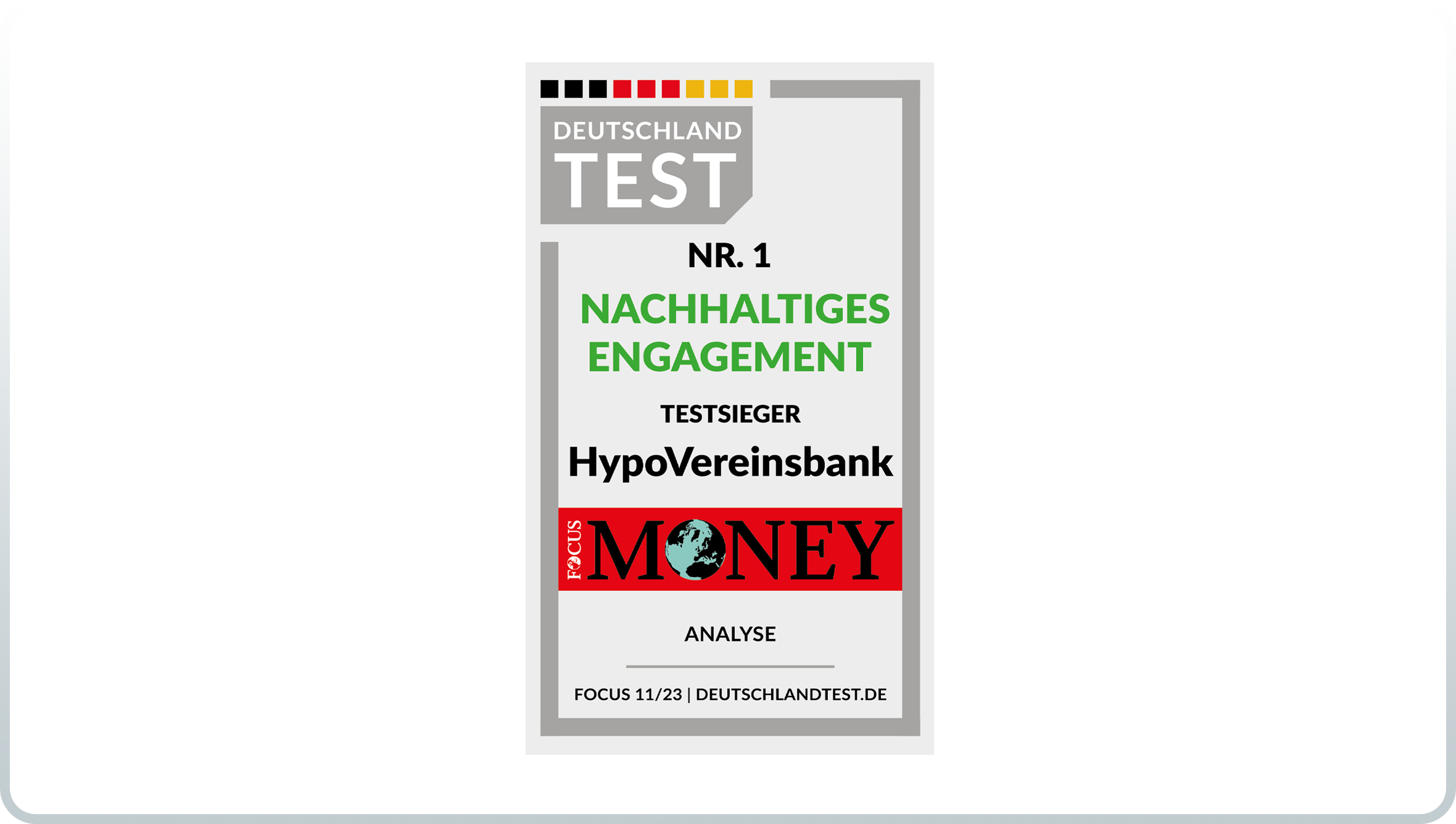 Das SZ Institut beauftragte das Deutsche Kreditinstitut (DKI), den Fairness-Faktor der Banken unter die Lupe zu nehmen. Qualitätskriterien waren das Vertrauen der Kund:innen, Vertragskonditionen und Produktpalette, Qualität der Beratung, Erreichbarkeit und die Verlässlichkeit des Unternehmens. Wir freuen uns sehr, mit Ihnen den ersten Platz erreicht zu haben. Zum Testergebnis